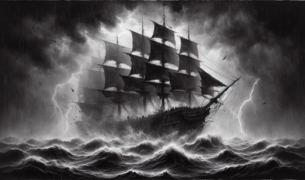 During violent storms, a ghostly ship appears on the horizon, its spectral form visible only in flashes of lightning. Sailors whisper tales of an entire phantom fleet, harbingers of doom for those unfortunate enough to encounter them at sea.